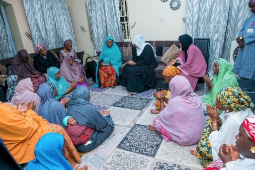 Aisha Buhari who is the first lady and wife of President Muhammadu Buhari, has paid a visit to the family house of late Nigerian Air Force squadron leader Baba Ari who died while rehearsing for the Nigeria’s 58th Independence day celebration.
