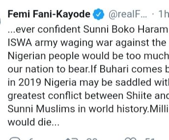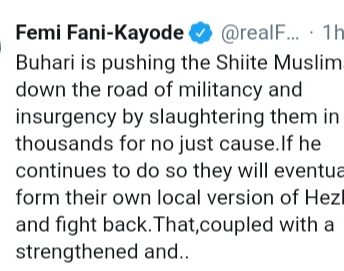 Shiite Muslims will form Hezbollah if Buhari continue to slaughter them Fani-Kayode