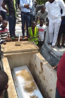 The late Seun Omogaji was buried in a white casket, and dressed in white outfit, as his family followed through with all his wishes for his funeral, in his alleged Instagram suicide post he put up Yesterday.