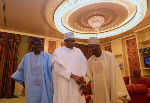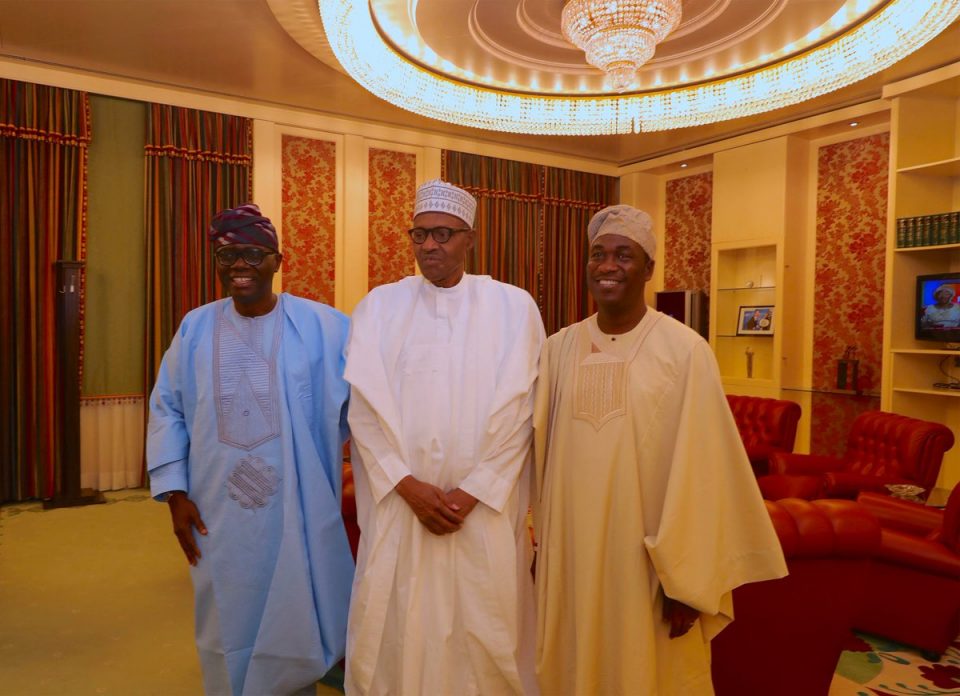 The Lagos State Governor-elect Sanwo-Olu and his Deputy Obafemi Hamzat on Monday met with President Muhammadu Buhari in the State House, Abuja were they held a closed-door meeting with the President on issues consigning Lagos State.