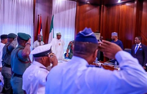 President Muhammadu Buhari on Monday 30th December 2019, met with Nigerian Service Chiefs behind closed doors at the Presidential Villa, Abuja.