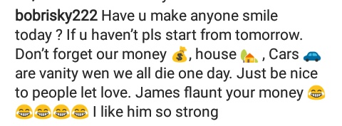 “James I’m inspired by you darling cos you came out to tell the world wat u are going through. The day I saw your viral video I was so like who is dis strong guy. Now let me tell u darling….