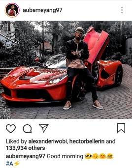 Arsenal and Gabonese striker, Pierre-Emerick Aubameyang clearly love the rich lifestyle, as the man who netted a brace for the London club last night against Leicester City shows off some of his taste in super fast cars.
