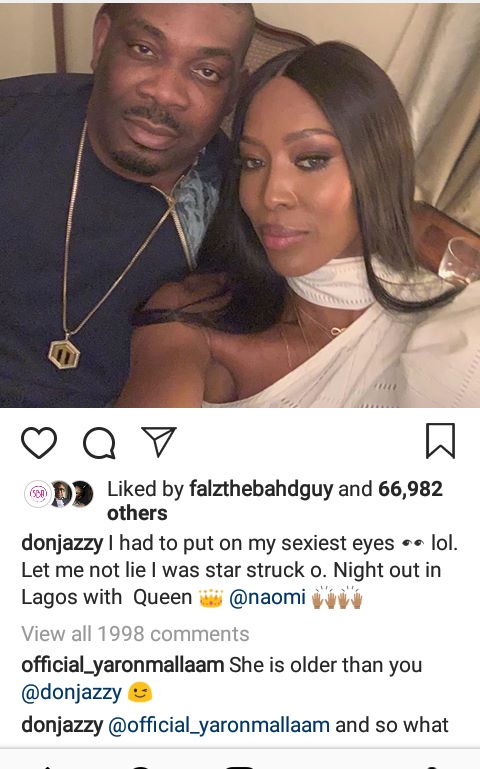 Nigerians are proving once more that they are kings and queens of social media bullies, as they have ‘gathered’ on the page of Don Jazzy to call him out on why he was with Naomi Campbell, saying she is too old for him..lol