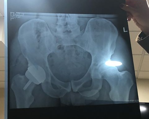 “I underwent a hip resurfacing surgery in London yesterday morning…feeling a bit battered and bruised just now but hopefully that will be the end of my hip pain I now have a metal hip as you can see in the 2nd photo and I look like I’ve got a bit of a gut in photo 1”