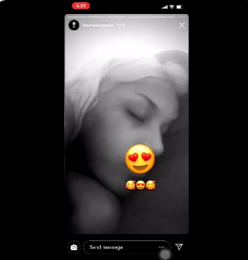 The video which could be are from a piece of music visual, shows the self-titled African giant, Burna Boy with the British rapper, resting her head on the chest of the Nigerian while he filmed her dozing off!