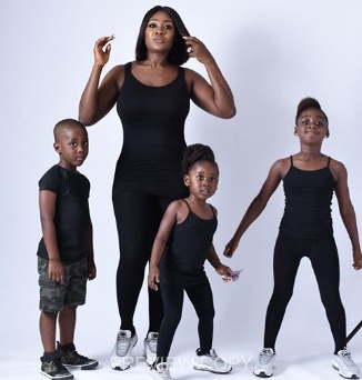 Mercy Johnson-Okogjie in her latest project which is focused on women getting back their perfect shape after going through the rigour of pregnancy, has added her family into the whole fitness programme with the introduction of these photos. She also used the opportunity to wish herself a Happy Mothers Day.
