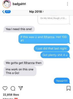 ” We gotto get Rihanna then…Ima work on this one. This is a go!” he ended the chat. See the snap as shared by Rihanna from Yung Berg.