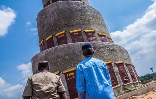 The monument, a massive tower with the symbol of a hand on the Zenith, representing the hand of God, sits on an expansive plot of land, reserved for religious purposes.