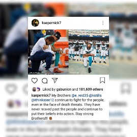 TMZ had reported on Sunday that the former 49ers quarterback posted a photo Sunday that appeared to be taking a swipe at something Jay said last week during his press conference with NFL commissioner Roger Goodell when he suggested “we’ve moved past kneeling” to “actionable items.”
