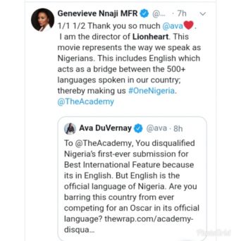 DuVernay also slammed the decision in a tweet, saying “To @TheAcademy, You disqualified Nigeria’s first-ever submission for Best International Feature because its in English. But English is the official language of Nigeria. Are you barring this country from ever competing for an Oscar in its official language?”