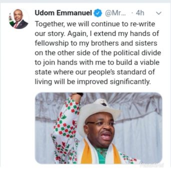 The Governor of Akwa Ibom State, Governor Udom Emmanuel has reacted to the Appeal Court verdict affirming his victory in the March 9th 2019 Governorship election, as he extends hands of fellowship to the opposition for a better Akwa Ibom.